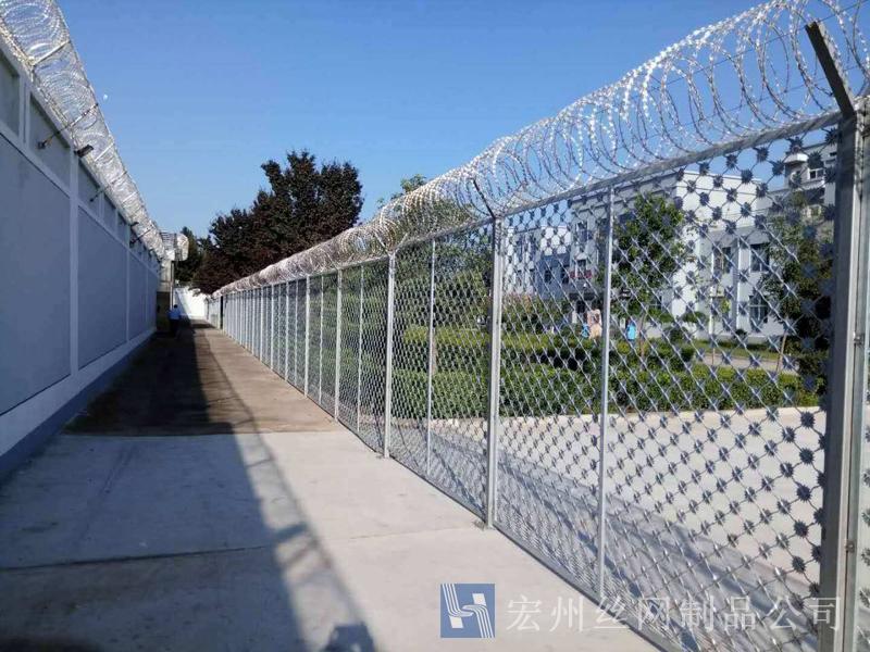 防攀網(wǎng)制作工藝:刀片用及耐腐蝕性的熱鍍鋅鋼板或不銹鋼板做材料,由專用機(jī)械強(qiáng)力包附與熱鍍鋅高碳鋼絲或不銹鋼絲做的芯線上。