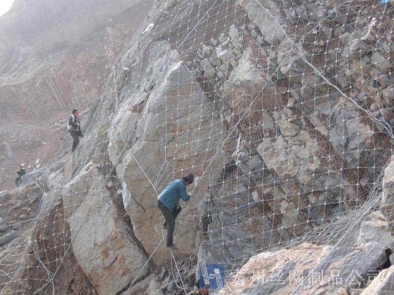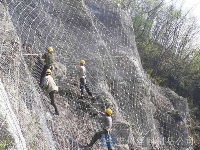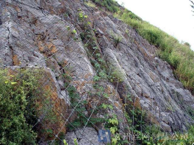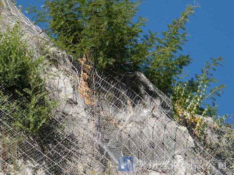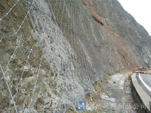 主動(dòng)防護(hù)系統(tǒng)是以鋼絲繩網(wǎng)為主的各類(lèi)柔性網(wǎng)覆蓋包裹在所需防護(hù)斜坡或巖石上,以限制坡面巖石土體的風(fēng)化剝落或破壞以及為巖崩塌(加固作用),或?qū)⒙涫刂朴谝欢ǚ秶鷥?nèi)運(yùn)動(dòng)(圍護(hù)作用)。是柔性防護(hù)網(wǎng)的一種。