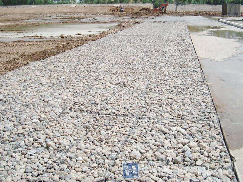 公路加筋網由網孔規(guī)格8 X 10cm 的雙絞合金屬網制成,材料全部采用熱鍍鋅防腐表面處理,一根橫向加筋棒以16厘米為間距穿入擰花鋼絲中間。具有高網帶抗拉強度,高網帶屈服伸長率。